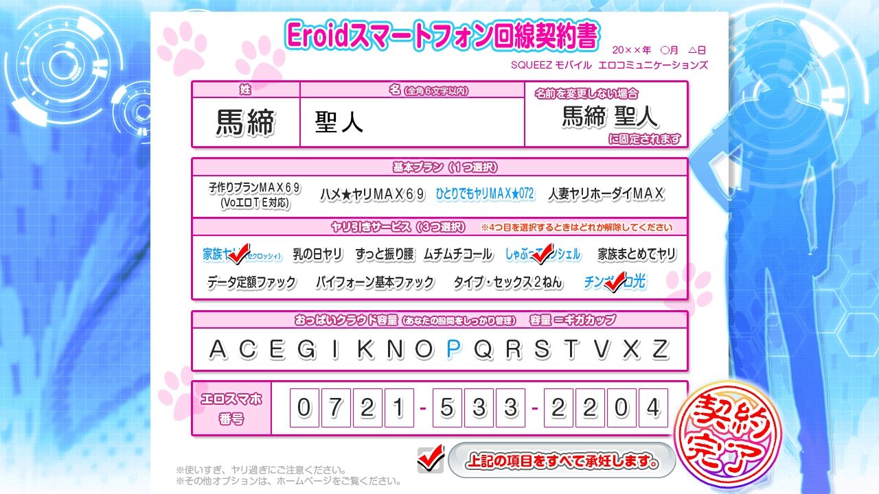 (名前決定時の契約的文書演出が秀逸、プラン等は適当に決めちゃっ